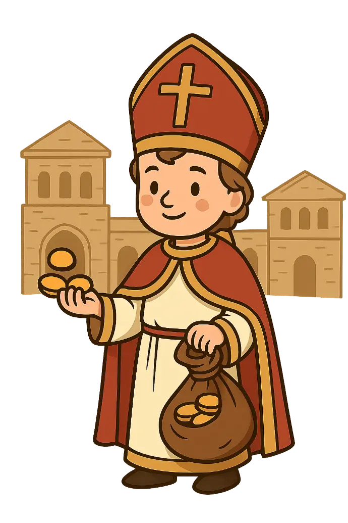 Nikolaus wurde Bischof von Myra (heute Demre) und erlangte durch sein Wirken großes Ansehen. Er war bekannt für seine Fürsorge gegenüber Armen, Kranken und Kindern. Viele Legenden berichten, wie er Menschen aus Notlagen rettete und ihnen Hoffnung schenkte.